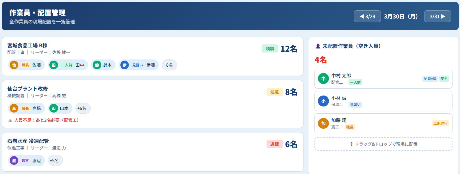 作業員・配置管理